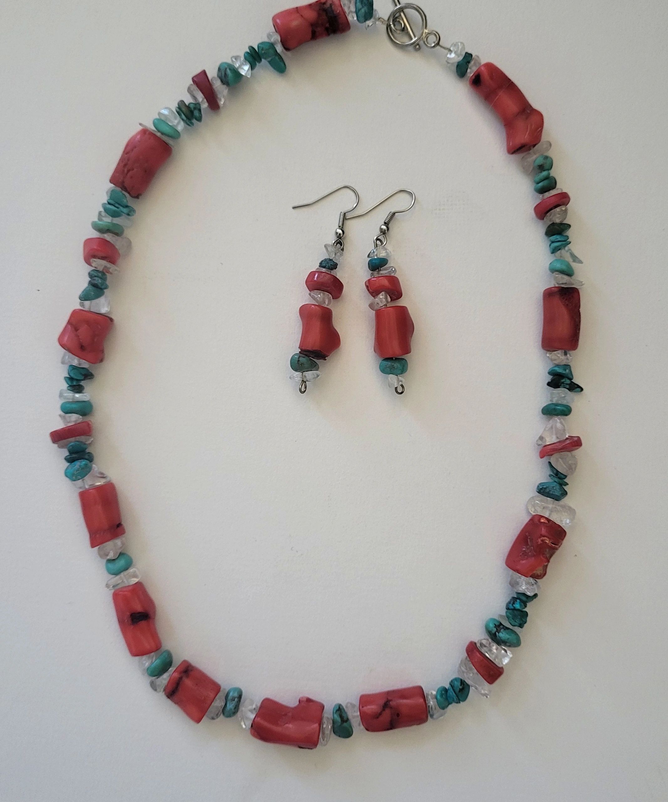 Oxblood coral beads and genuine Arizona turquoise with crystal stones. Brings favorable aspects of Mars to your chart. Turquoise is thought to bring good luck and promote communication.